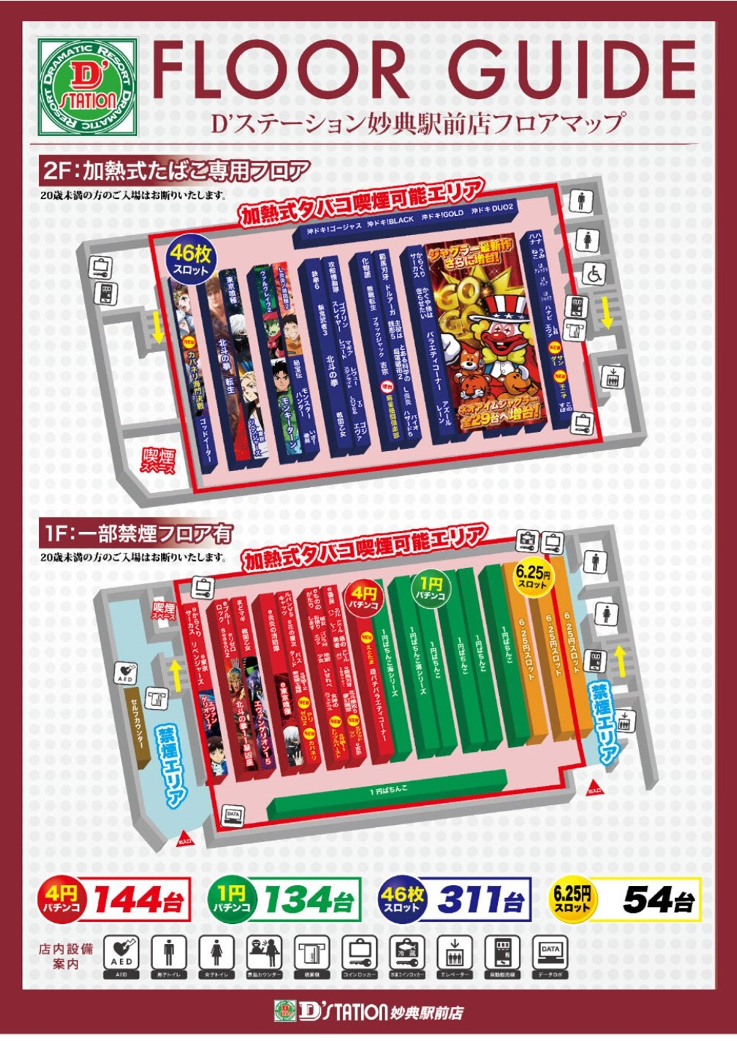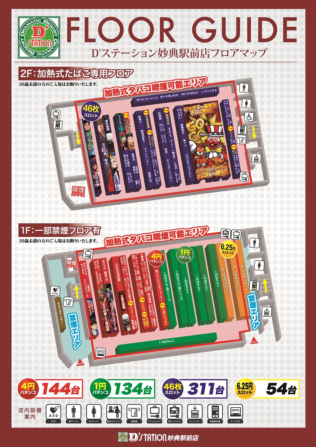 パチンコ: [100円/25玉] [100円/100玉] パチスロ: [1000円/46枚] [1000円/160枚]