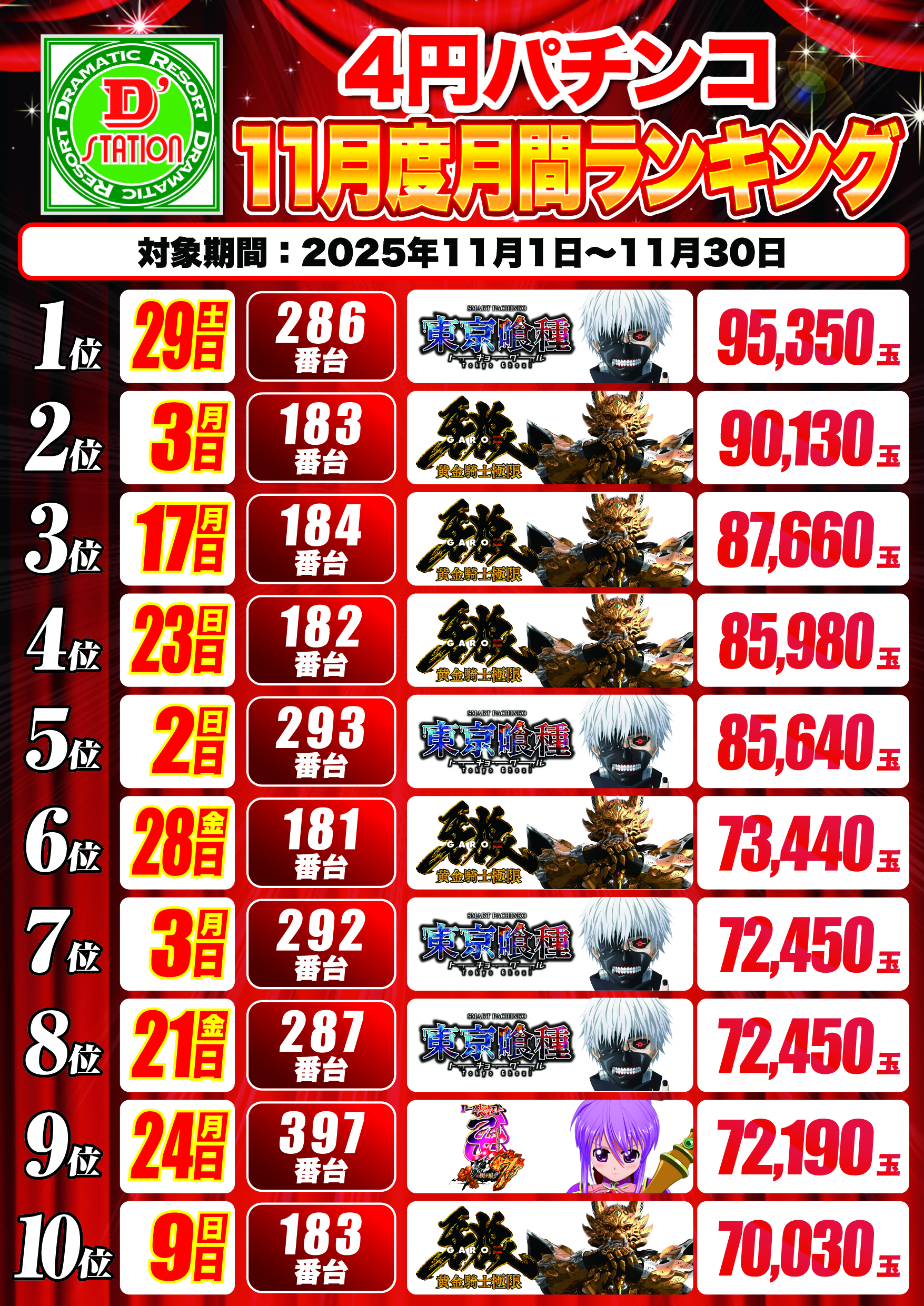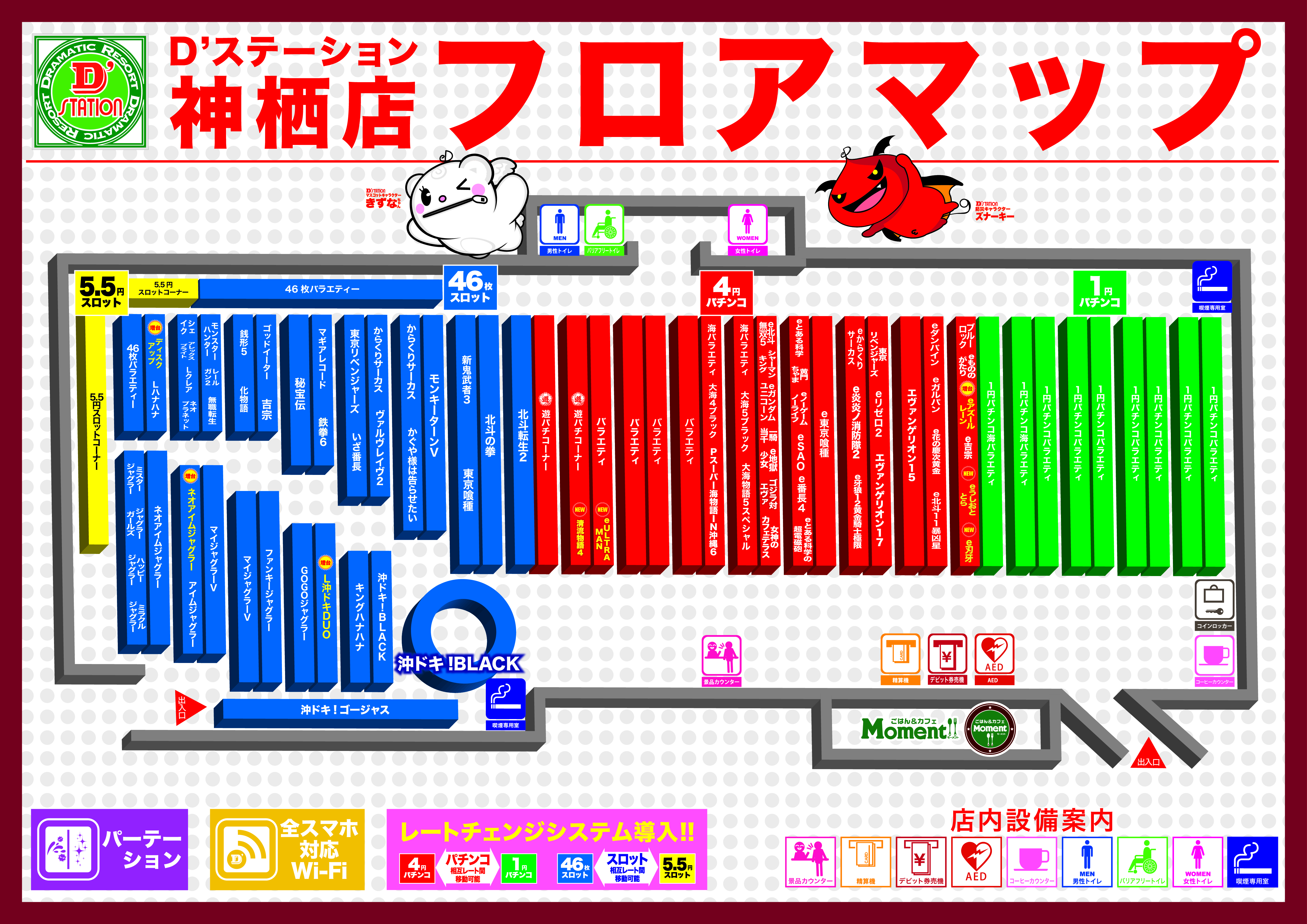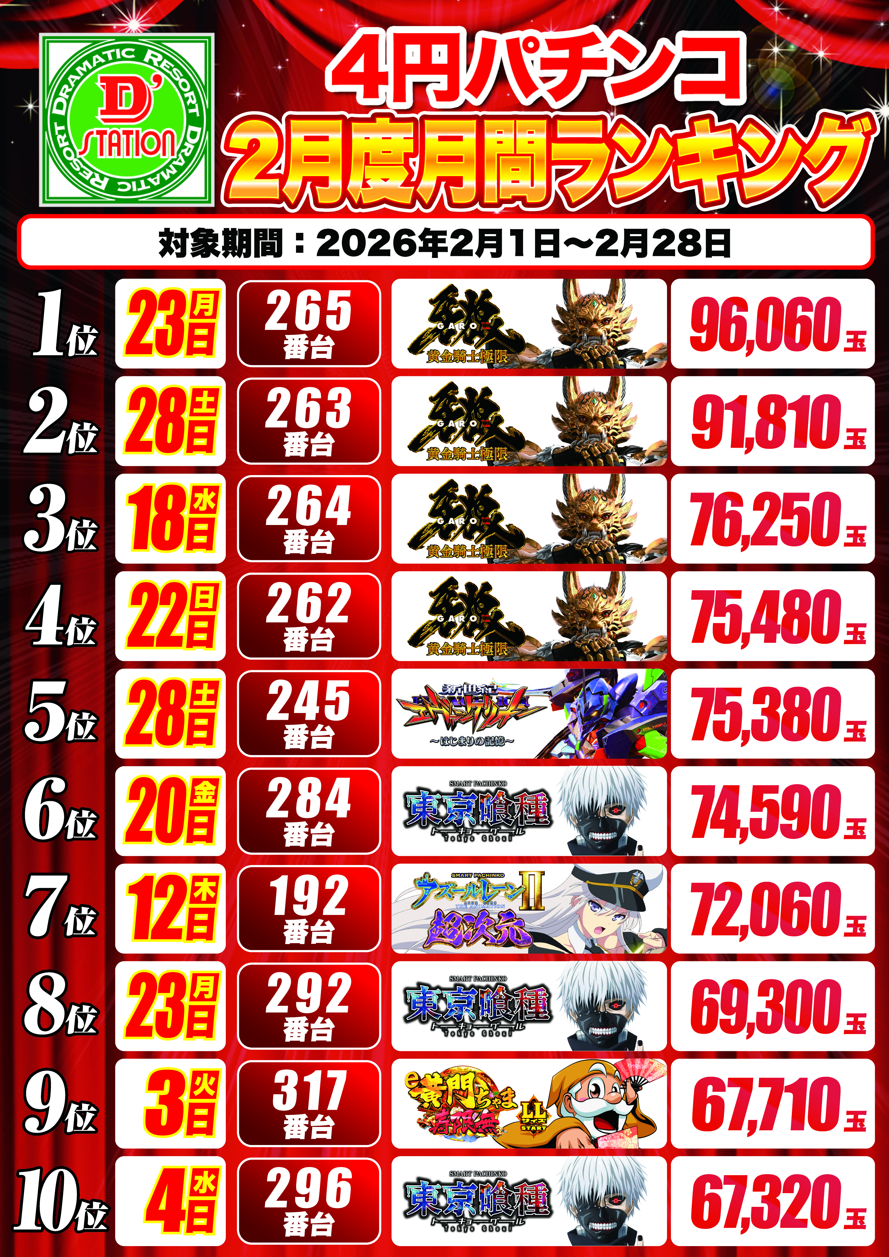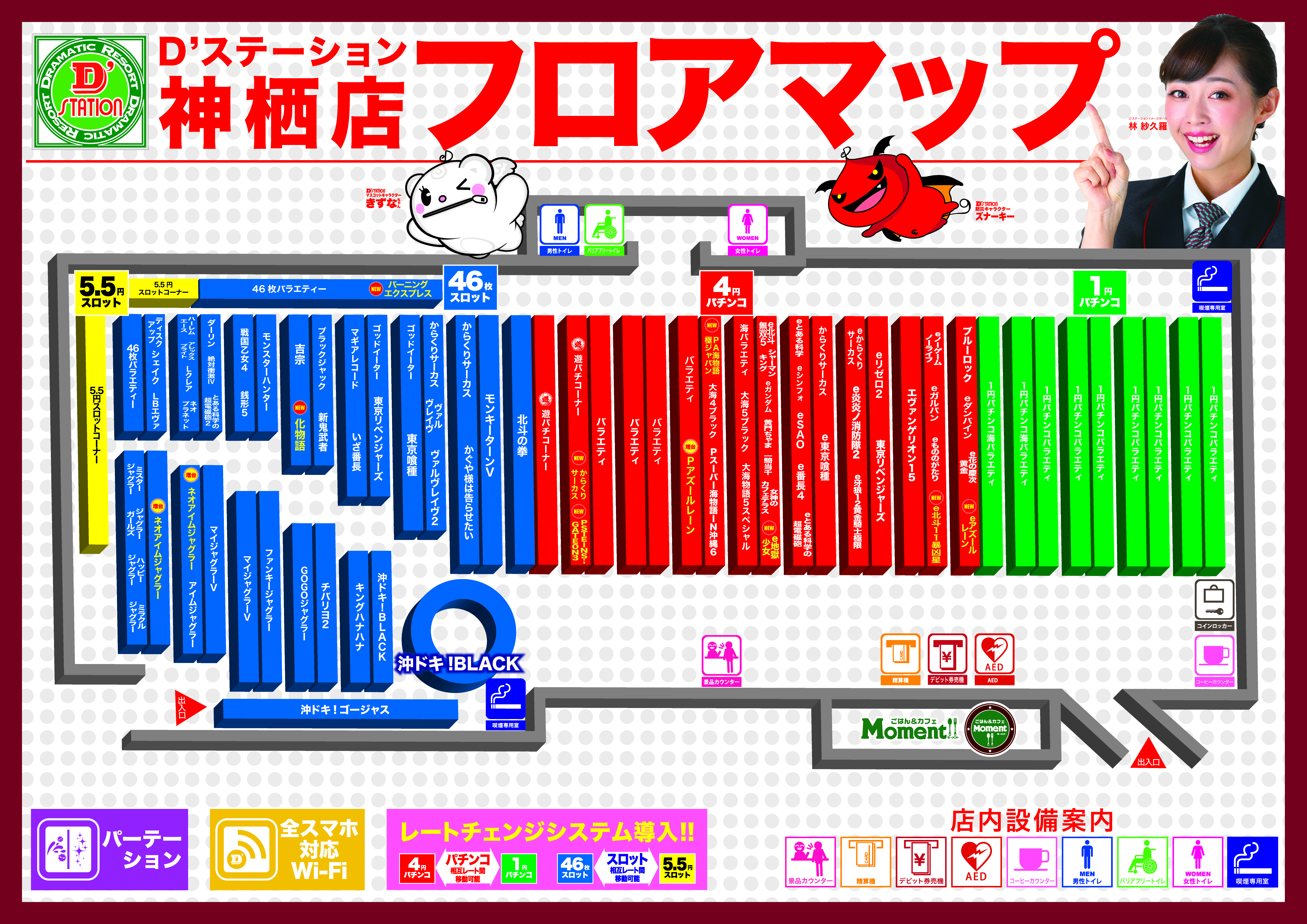 パチンコ: [4] [1] パチスロ: [1000円/46枚] [1000円/182枚]