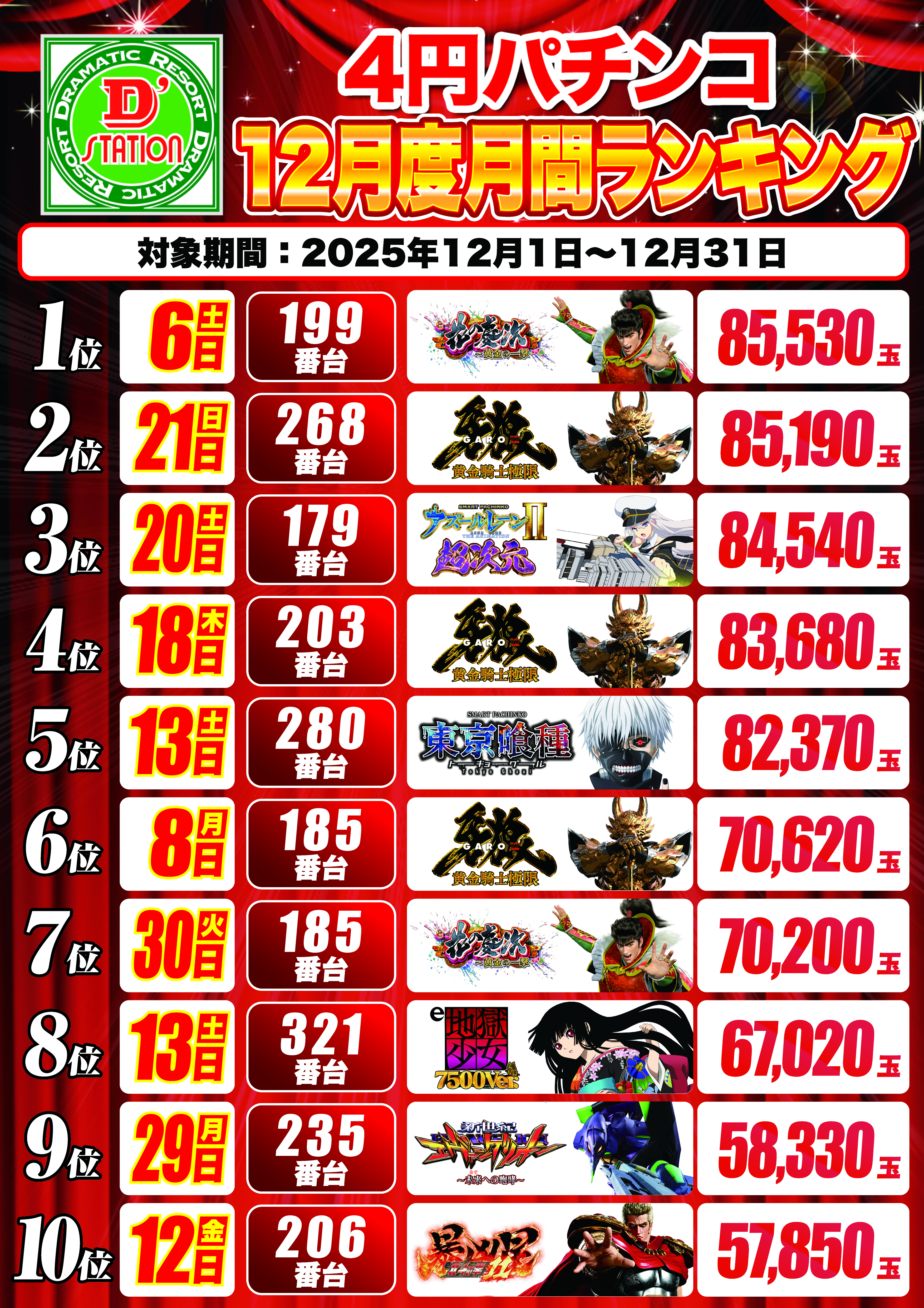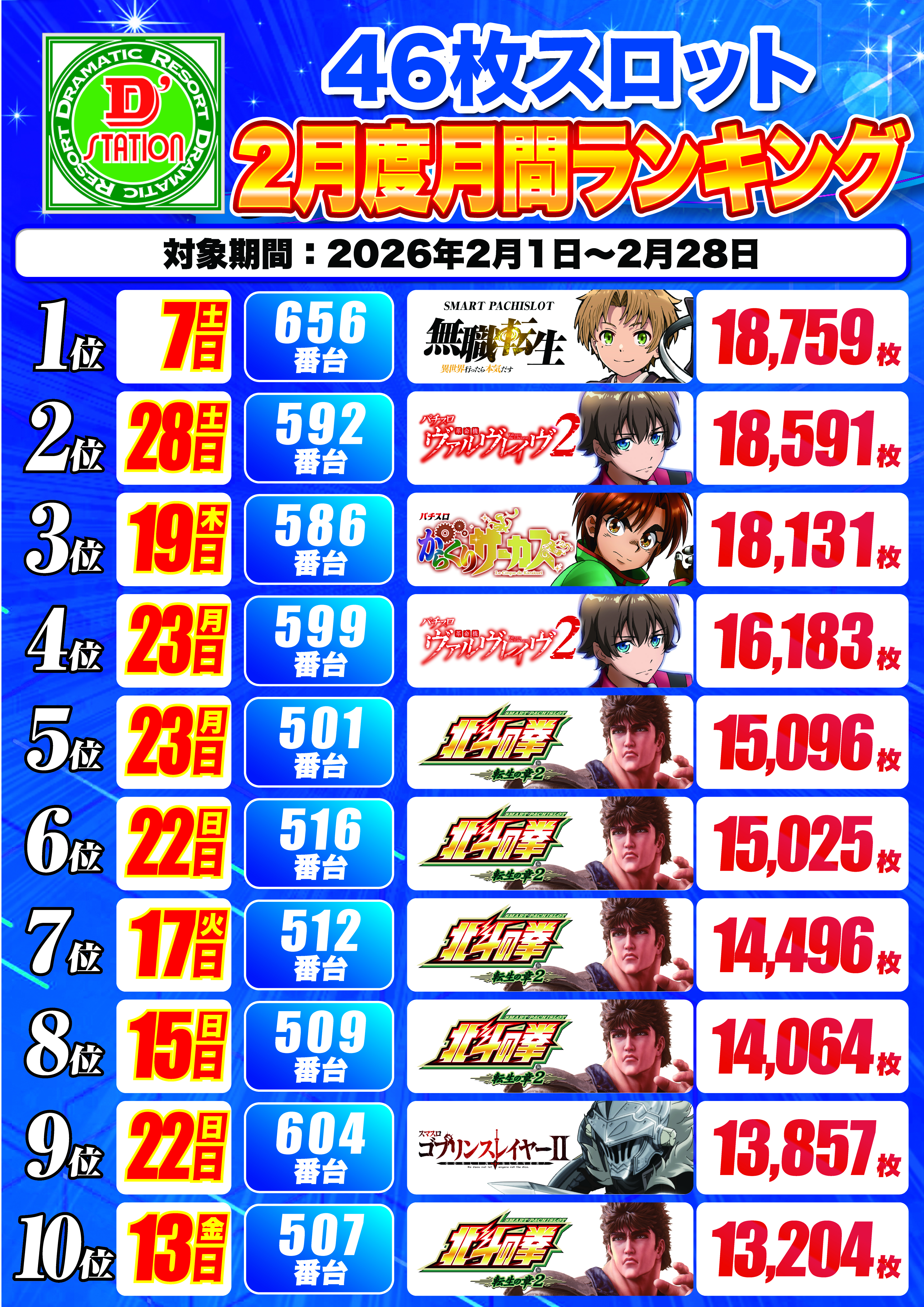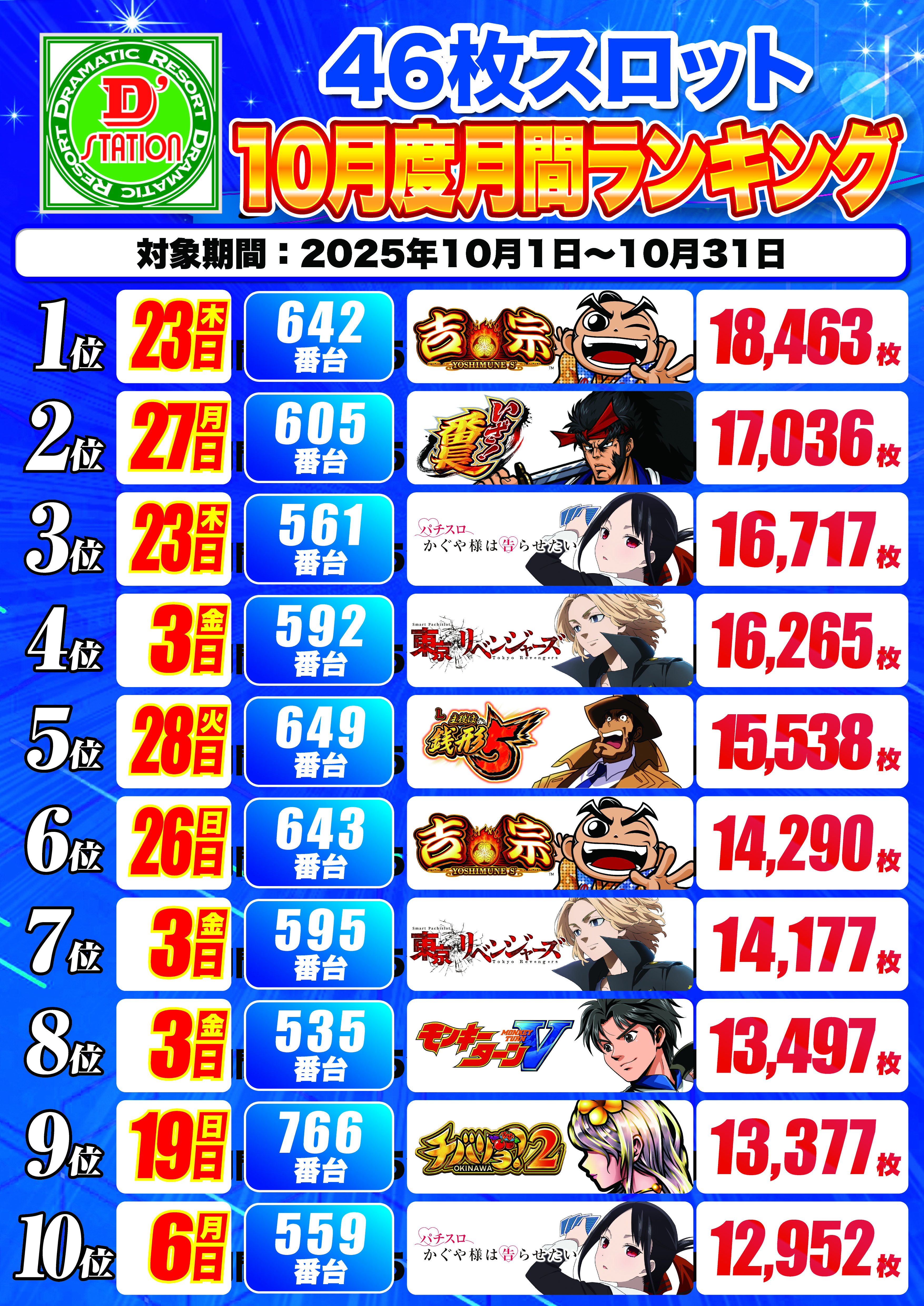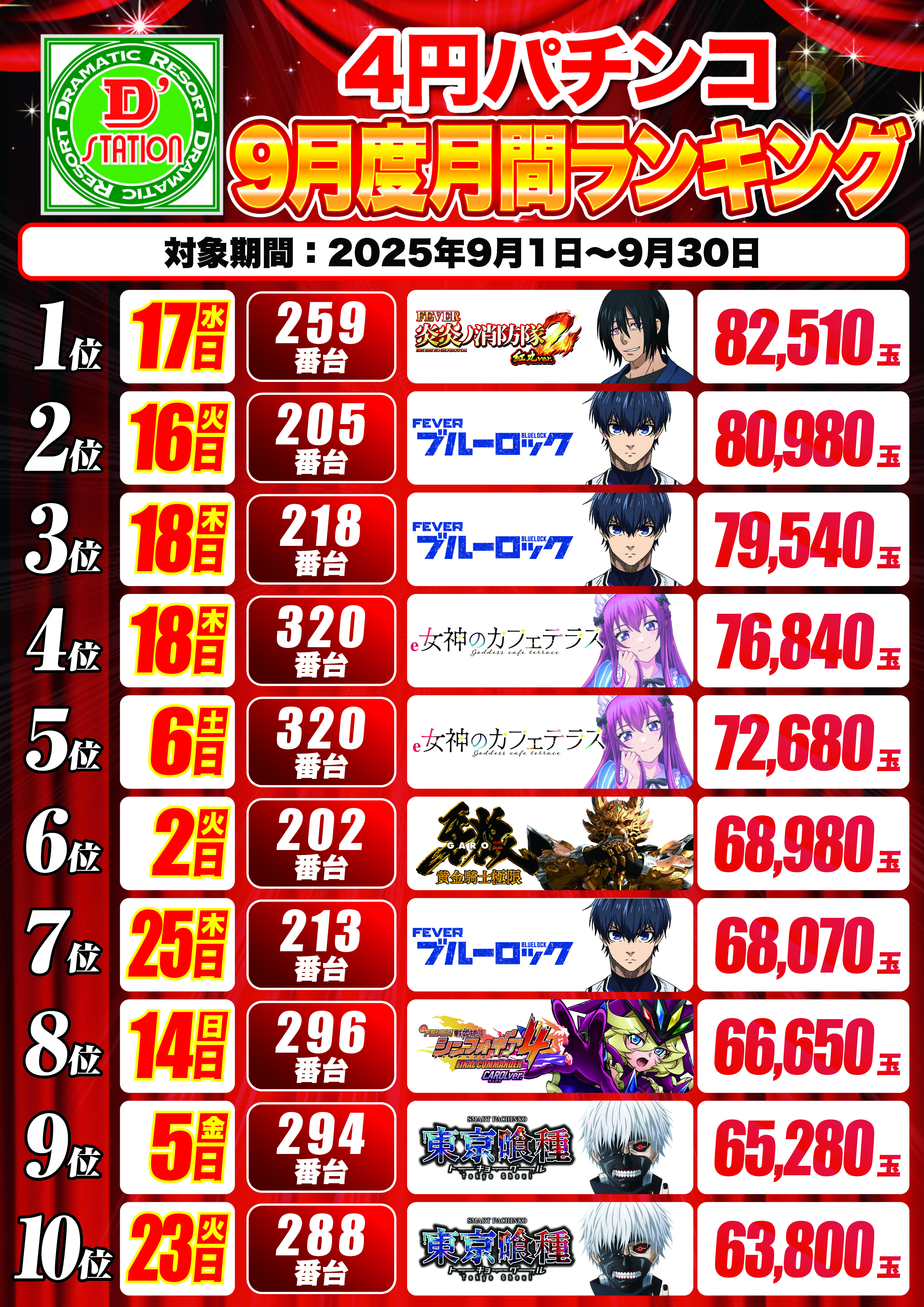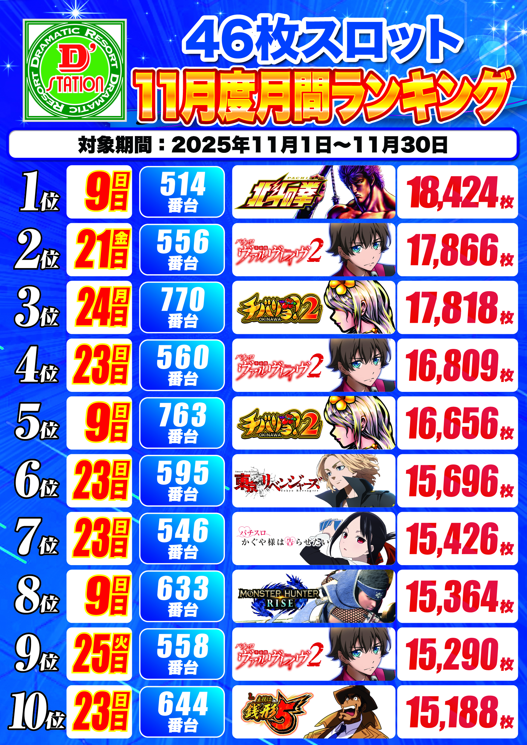 パチンコ: [4] [1] パチスロ: [1000円/46枚] [1000円/182枚]