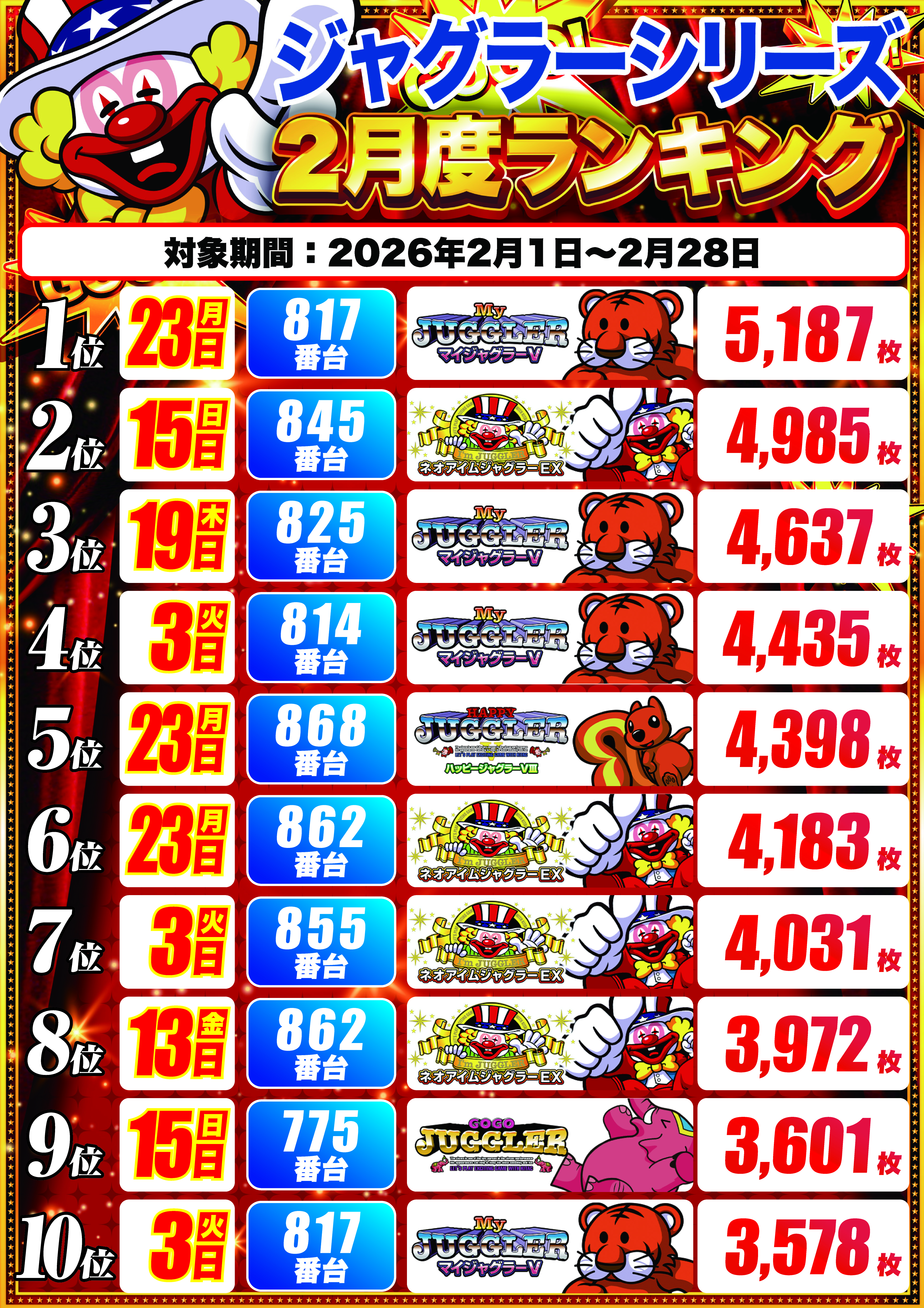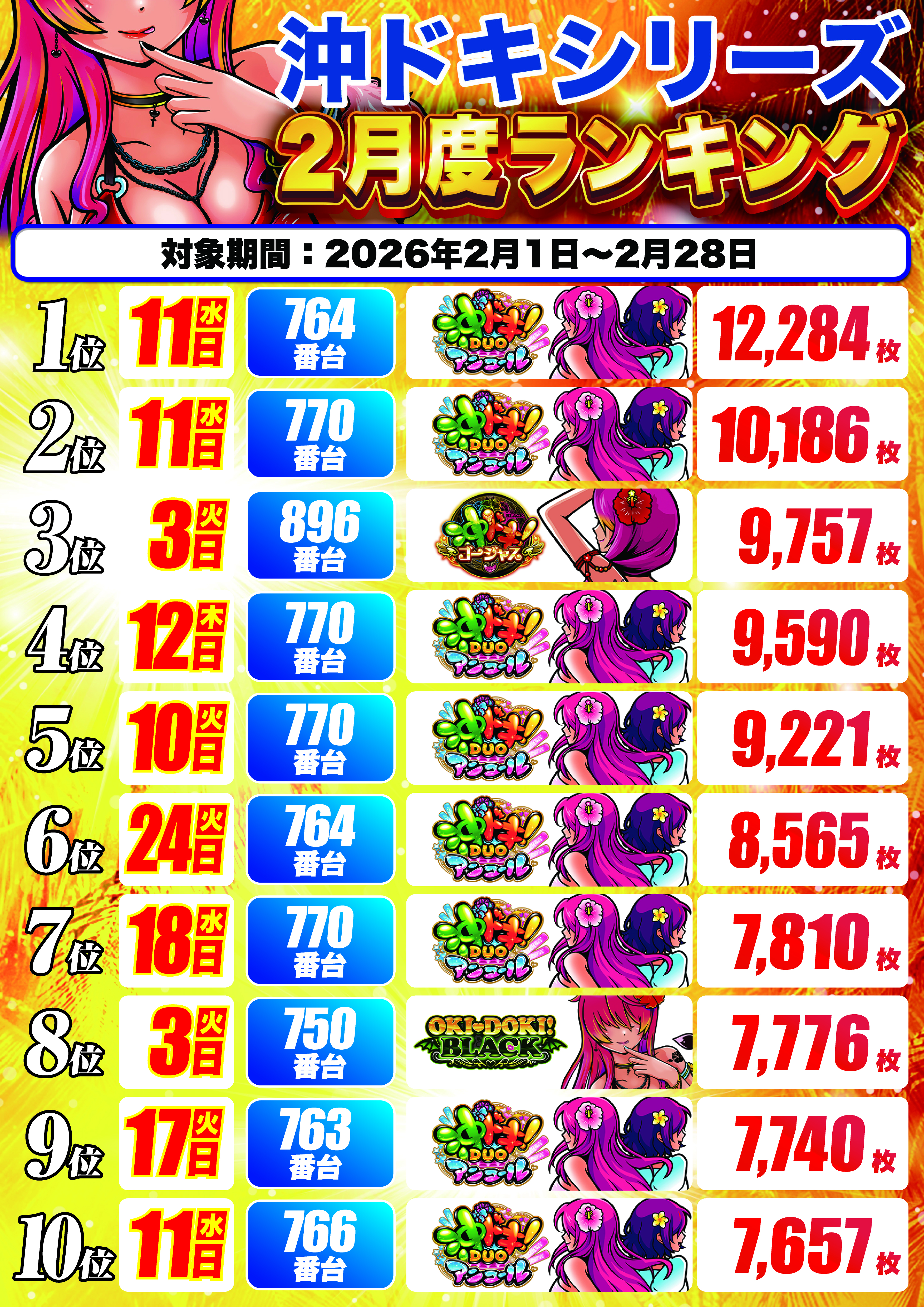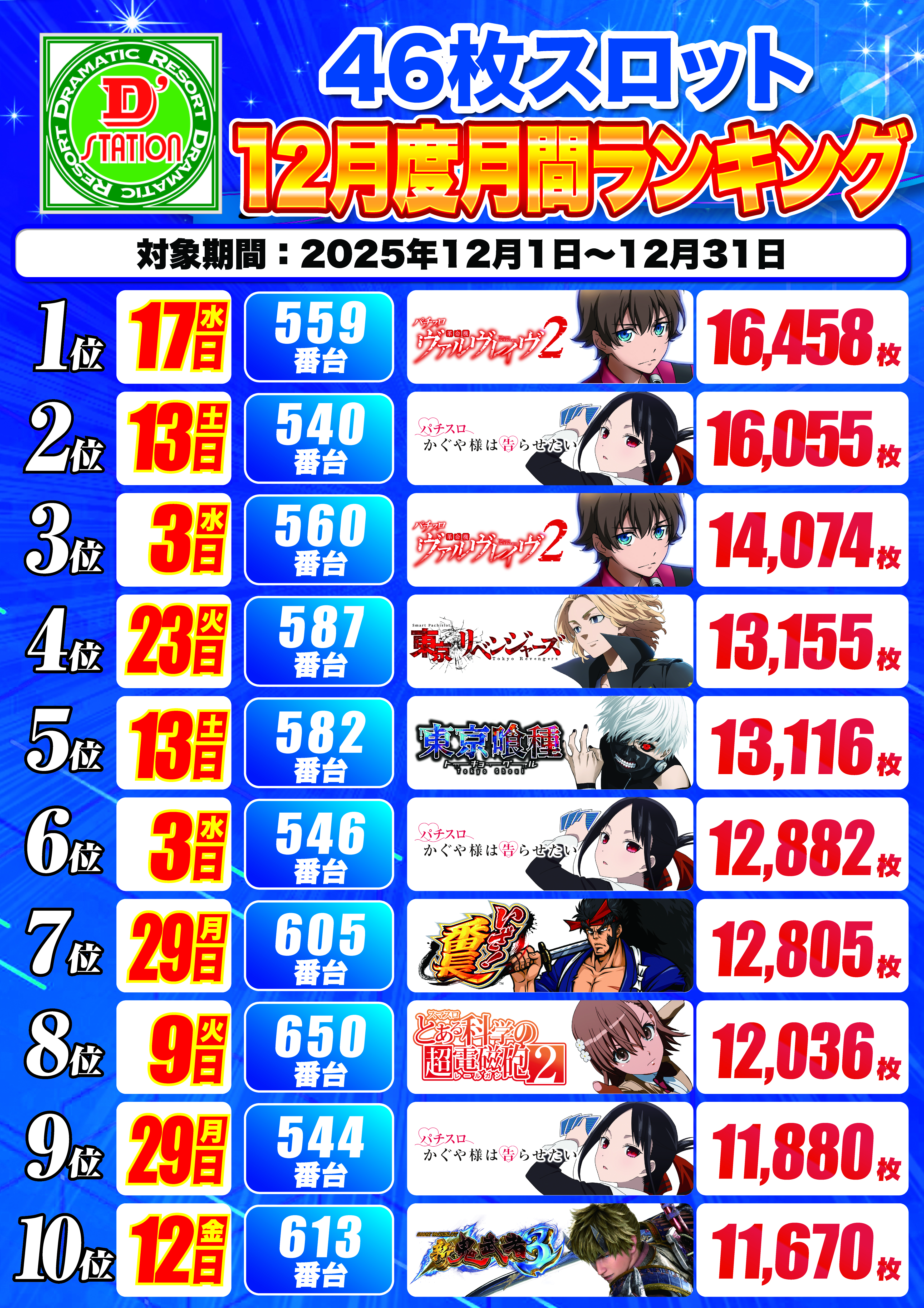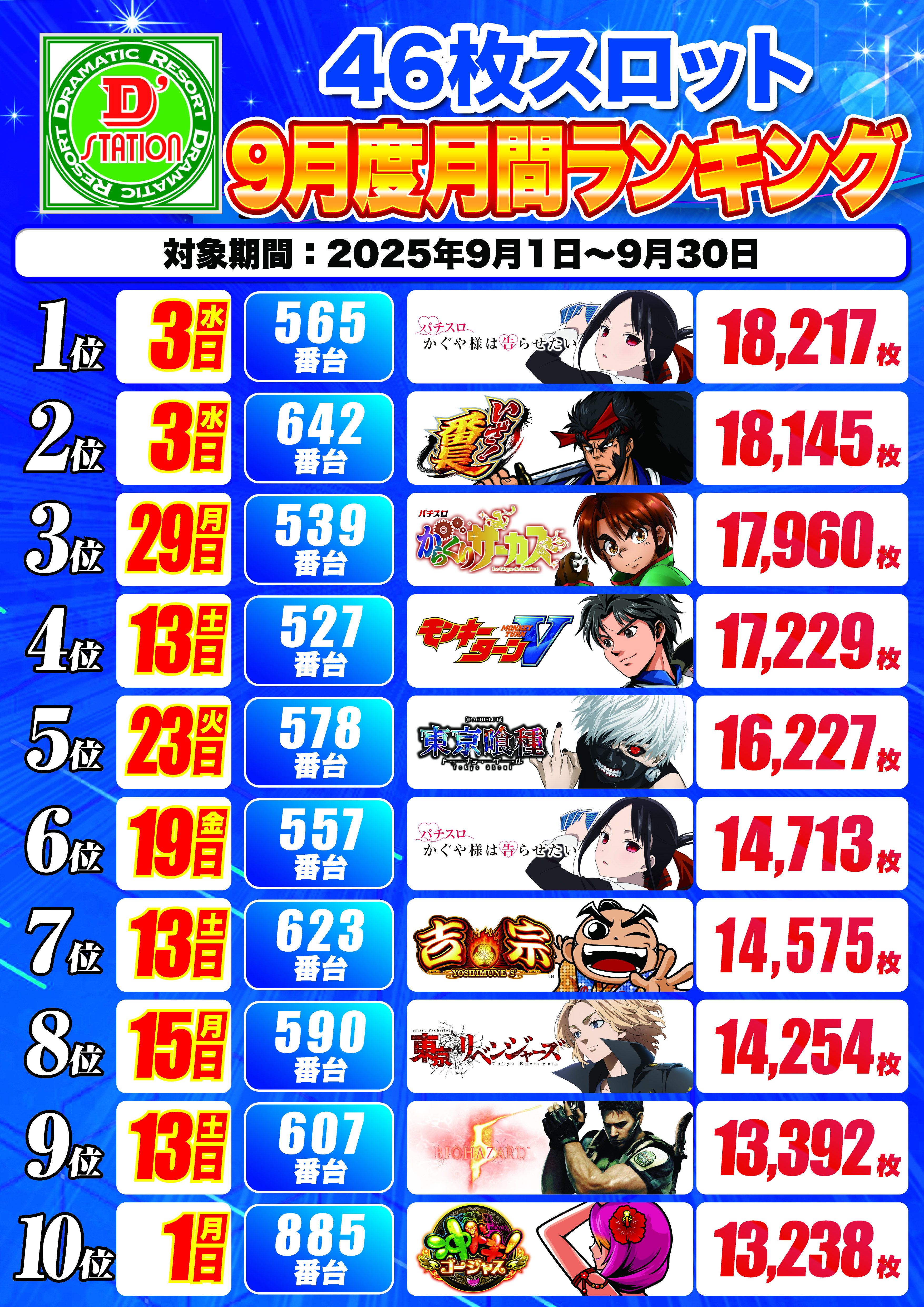 パチンコ: [4] [1] パチスロ: [1000円/46枚] [1000円/182枚]